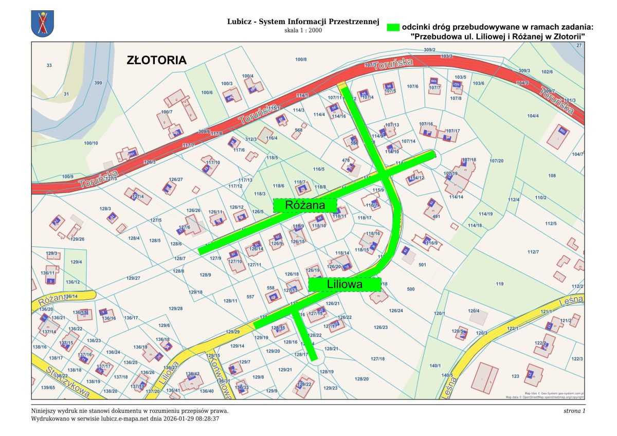Gmina Lubicz podpisała umowę na realizację zadania pn. „Przebudowa ul. Liliowej i Różanej w Złotorii”. Inwestycja ma zakończyć się do końca sierpnia br., a wartość zadania wynosi ok. 1 mln zł.